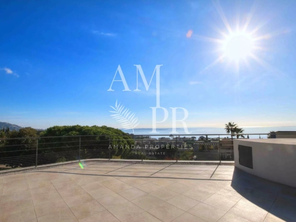 This villa offers wonderful views over the Mediterranean from the Esterel hills to the Lerins Islands.