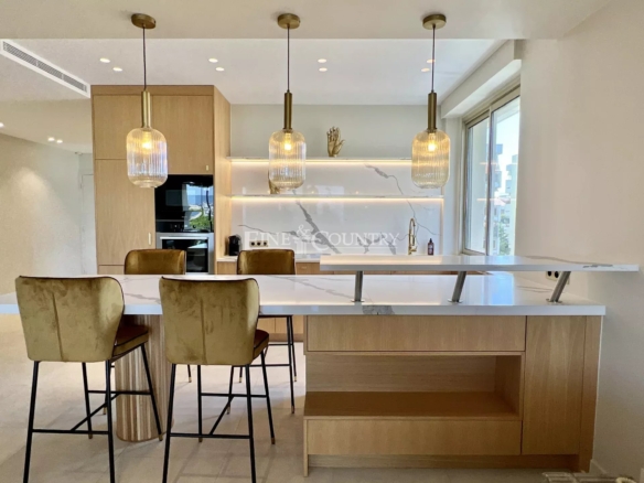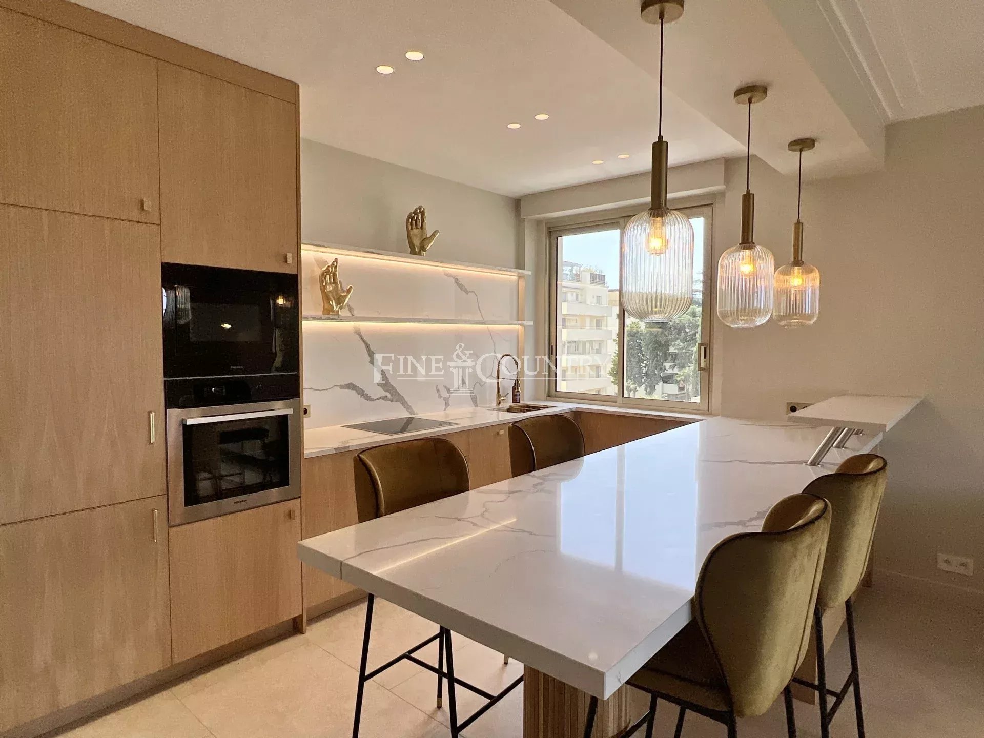This 96 m2 apartment has been completely refurbished to a high standard and comprises a large entrance hall, followed by a living room with open-plan kitchen opening onto two sea-view terraces.