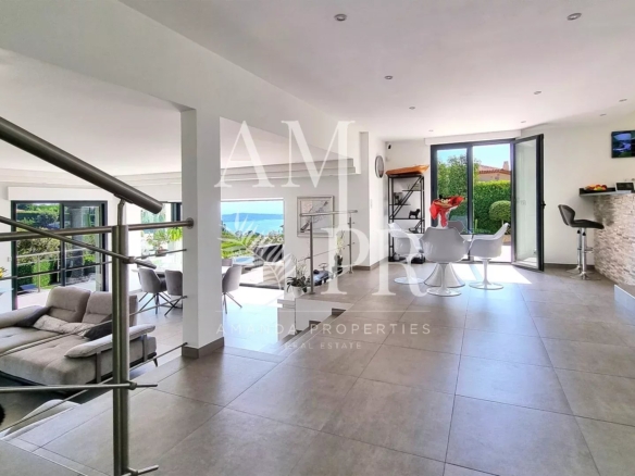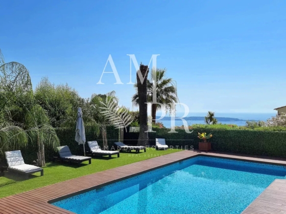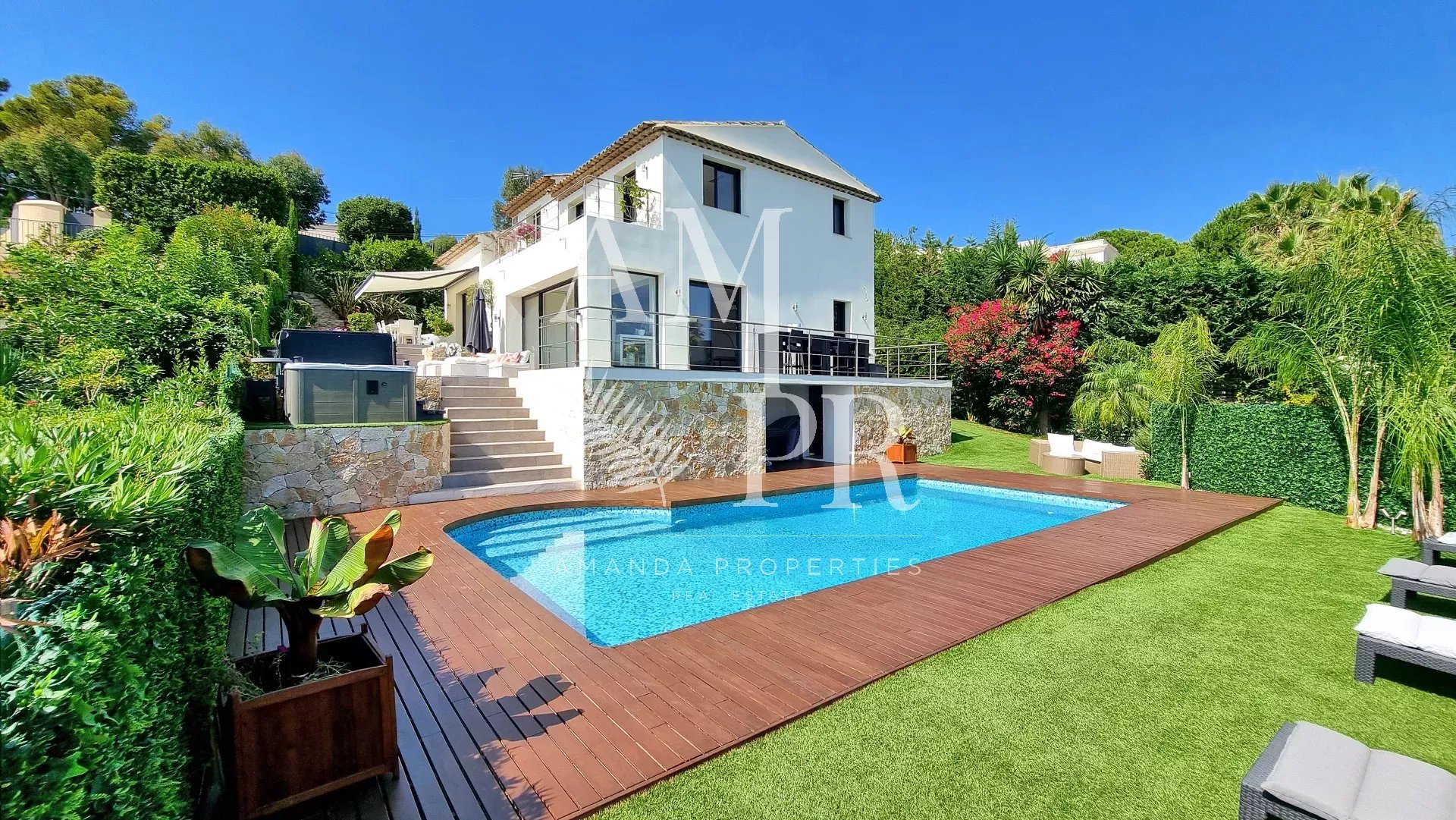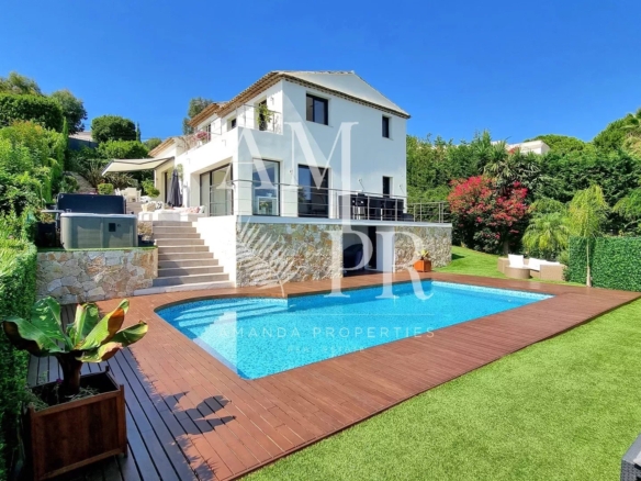 Your international Côte d’Azur real estate platform offers you in the heart of the residential area of Super Cannes, in a dominant position and overlooking the mountains, the Cap d’Antibes and the sea, very beautiful villa of modern Provencal style entirely and recently renovated in the contemporary spirit of about 200 m2. Nice plot of land of about 1180 m2 with swimming pool, bowls, several parkings.