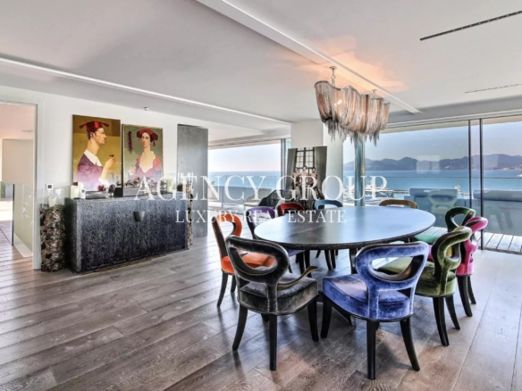 Located in one of the most prestigious residences on the Croisette, offering a superb panoramic view of the Bay of Cannes, we are delighted to present this magnificent contemporary Duplex with 570 m² of living space and its 410m² of terraces, enjoying a breathtaking view. breathtaking and high-end services.