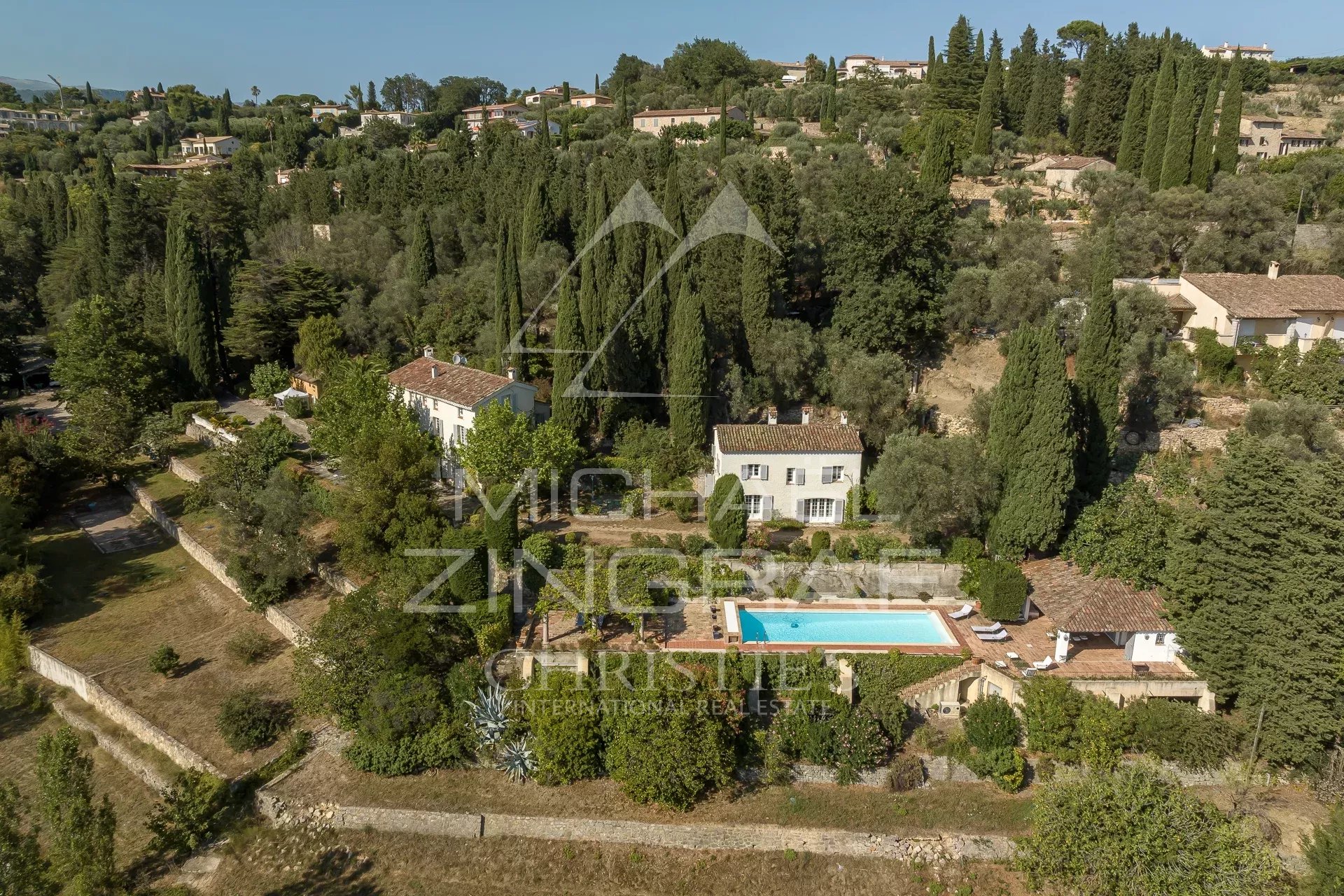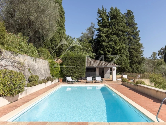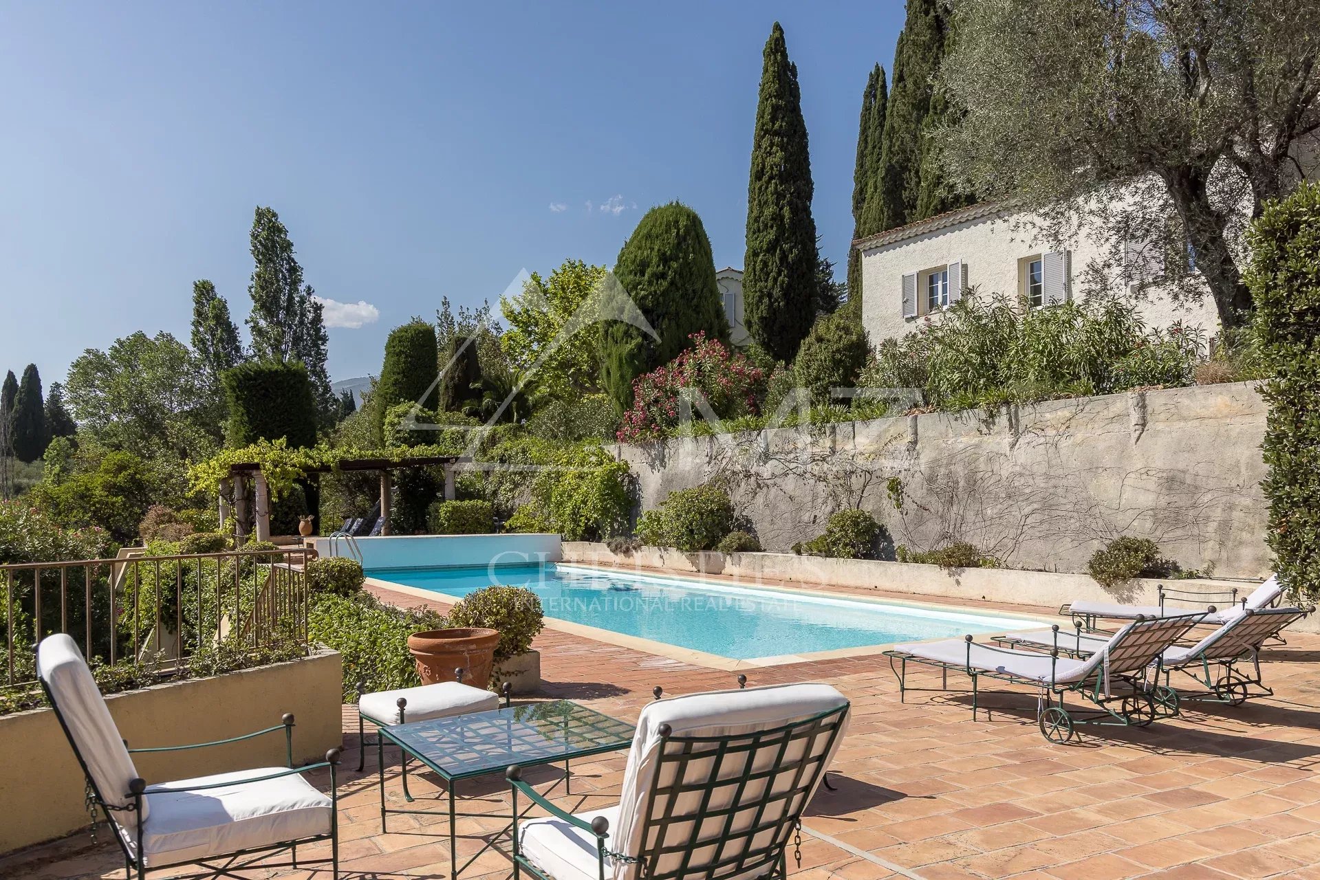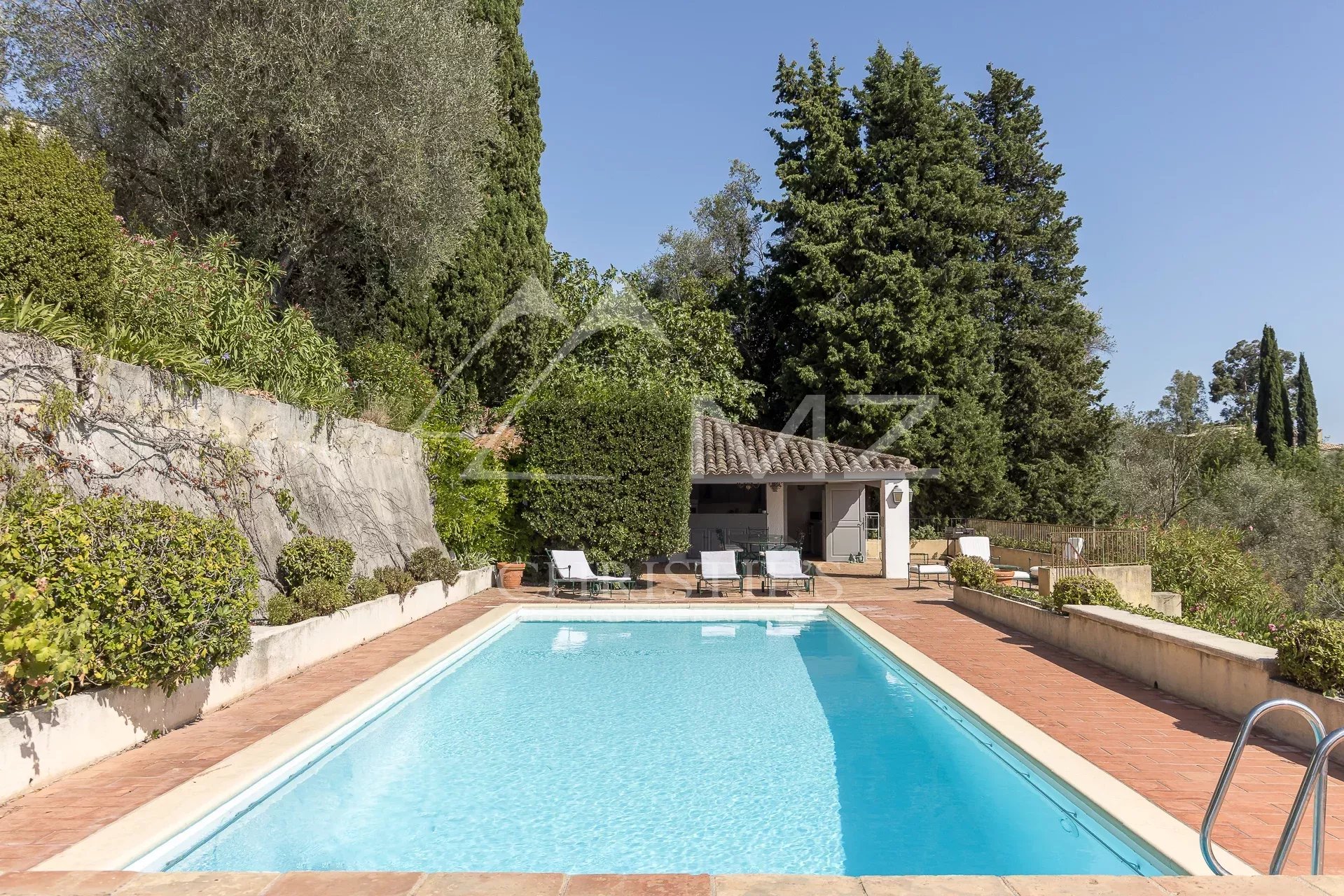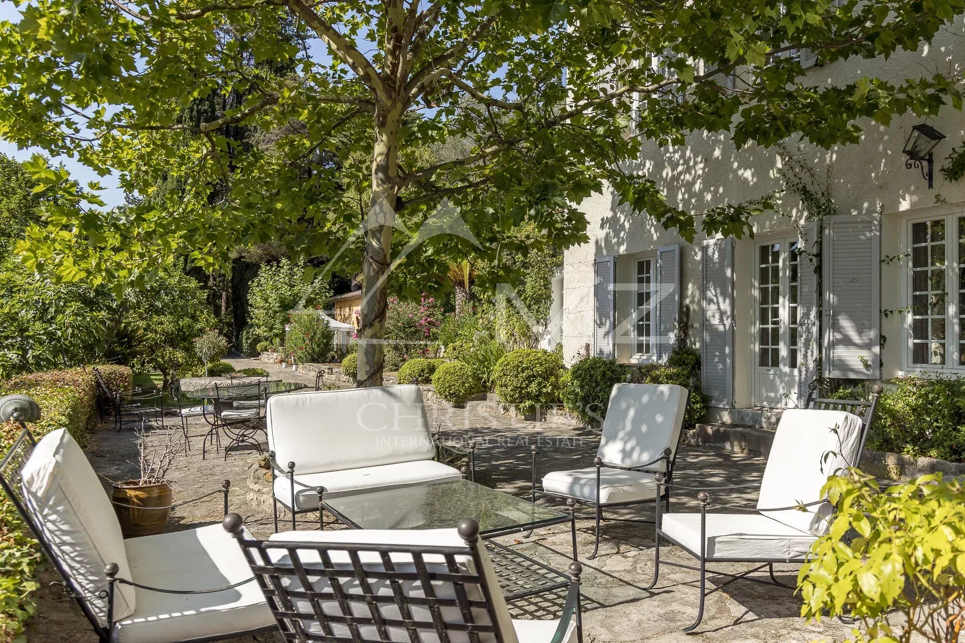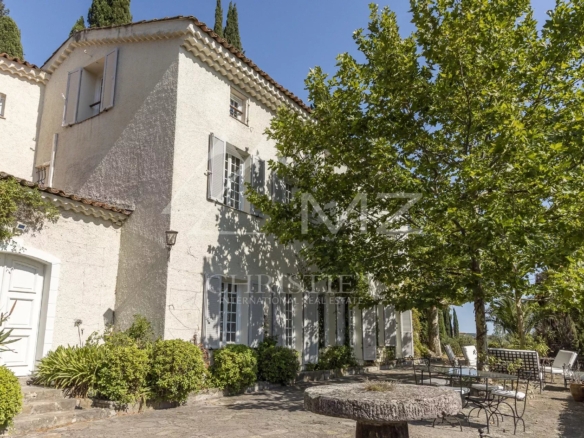 Located in a dominant position, close to the village of Plascassier, facing southwest, and enjoying panoramic views to the sea, this property consists of a main house, a guest house and a caretaker’s house. On grounds of more than 2 hectares, it also offers a large pool area with pool house equipped and a tennis court. Total living area of about 520 sqm with 9 bedrooms.