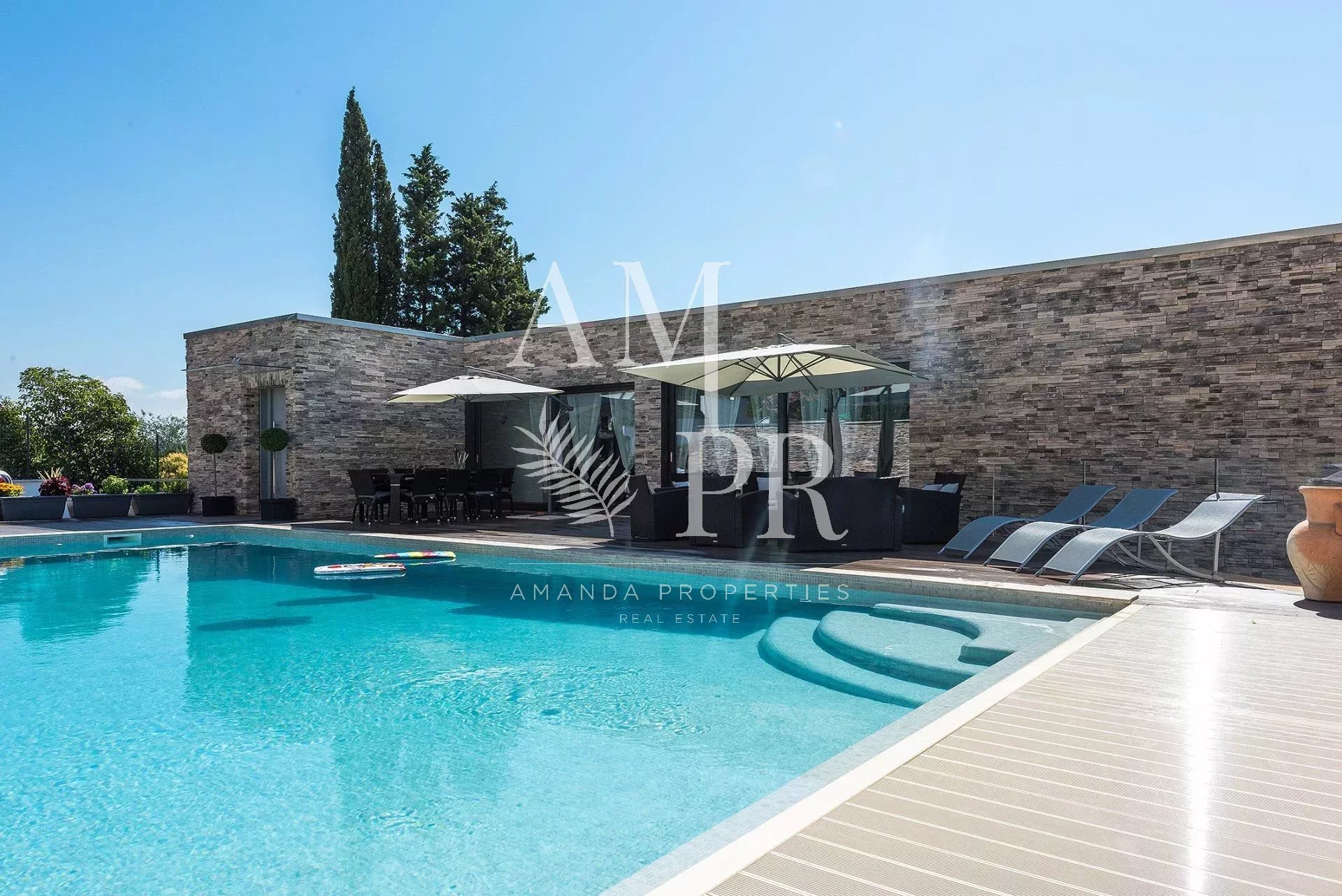 Your international Côte d’Azur real estate platform proposes you splendid contemporary villa, about 290 m2 with refined services on a ground of 1261 m2, giving a clear view to the sea.