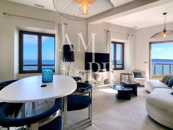 Your international Côte d’Azur real estate platform offers you this completely renovated duplex with top-of-the-range fittings, unique, on the front line facing the sea. Comprising two levels. Ground floor: Entrance hall, 3 bedrooms and respective bathroom. First floor: Living room, dining room, top-of-the-range fitted kitchen, bedroom and bathroom, all opening onto a spacious terrace with panoramic sea views.