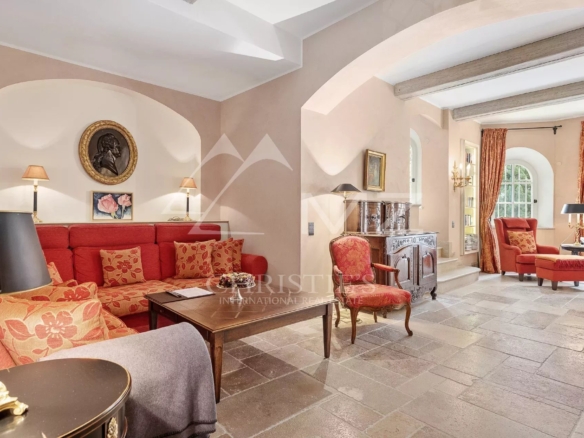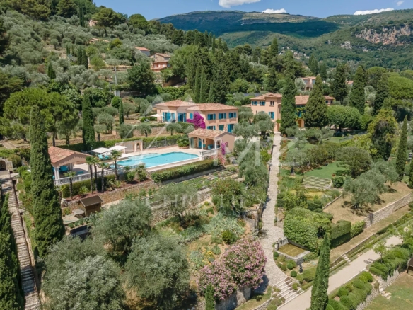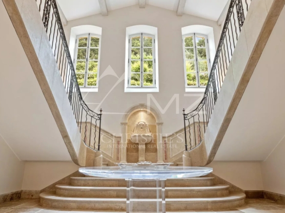Located in the most residential area of Grasse, this superb residence steeped in history is certainly the most notable in the city of perfumes. The property is set in more than 13 acres of wooded parkland, with typical Mediterranean species, and benefits from a panoramic view of the sea. The park has a beautiful swimming pool area with pool house, several ponds, a bowling alley, an olive grove with about 400 olive trees and a caretaker’s house. Completely renovated a few years ago, the house has been entirely renovated and restored in the respect of the tradition while preserving the authenticity of the Burgundy stone and the wrought iron. Located only 35 minutes from the airport and the beautiful beaches of Cannes.