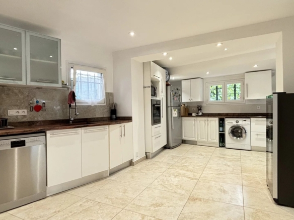 house of 230m2 completely redone, benefits in very large living room, with a dining room and a fully equipped kitchen, 5 bedrooms including a large bedroom of over 35m2, 3 bathrooms, and 3 toilets.