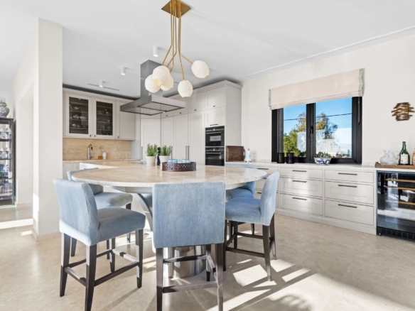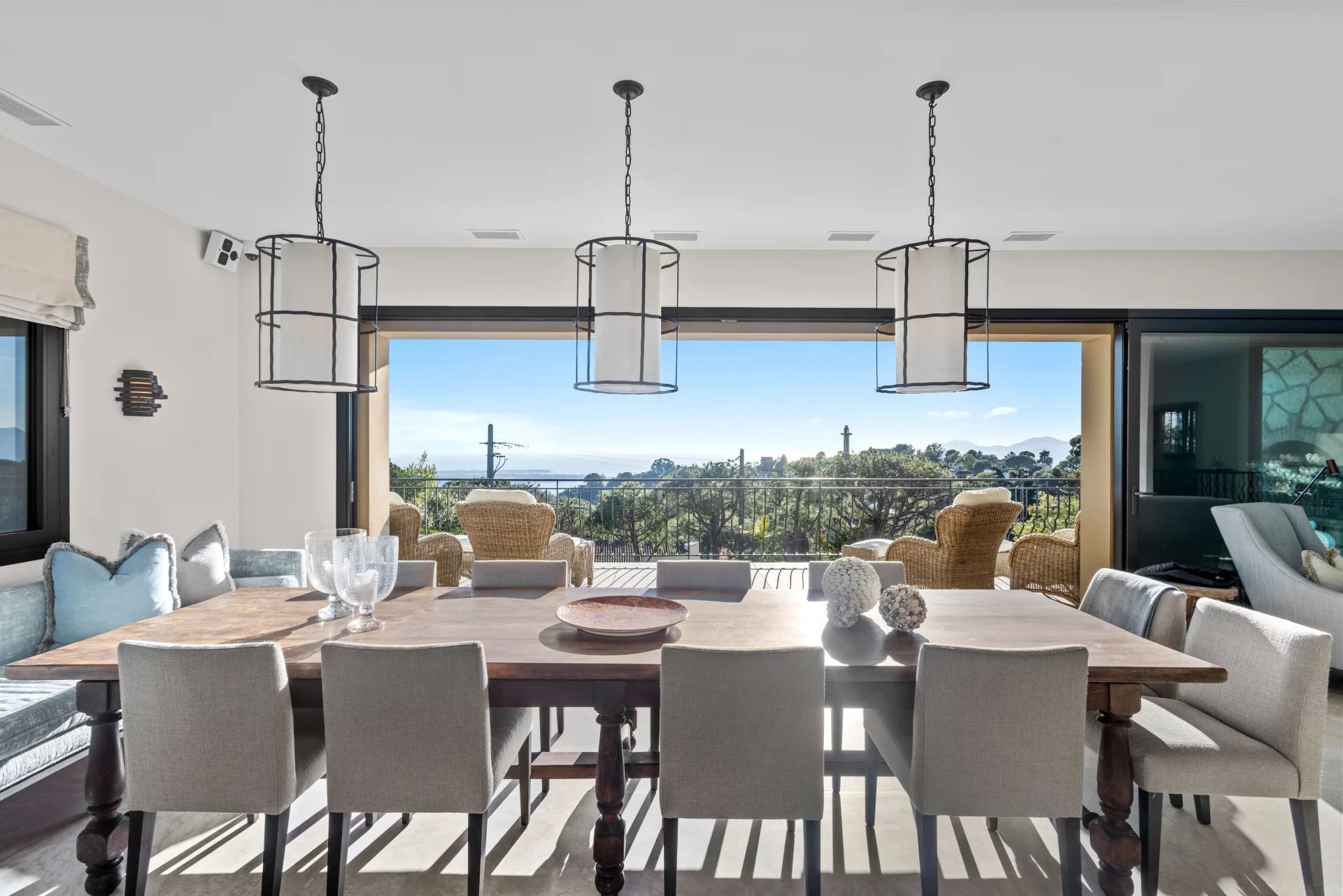 This recently renovated Provencal villa masterfully combines modern amenities with traditional charm. The inviting living room features a fireplace and leads to a dining area and a family-sized kitchen, all opening out to a terrace with expansive sea views. The villa offers five bedrooms, a private study, and a large family room, designed to accommodate family living at its best. A unique wine cellar integrated into the rock adds a distinguished element to the property. The villa is also fitted with underfloor heating and air conditioning for optimal living conditions. The outdoor space is equally impressive, featuring a heated swimming pool, a summer dining area, a sizeable garage, and a petanque court for leisurely afternoons.