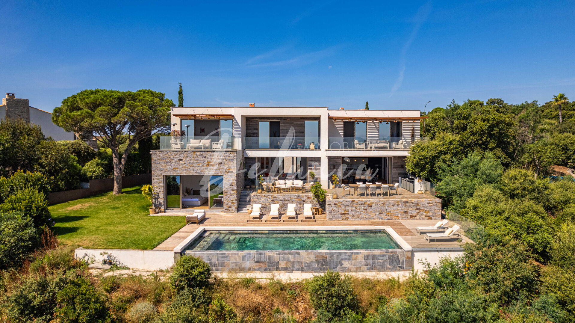 DELUXIA presents this modern villa in Les Issambres. With breathtaking views of the sea and the Esterel, this 315 sq m property on a 1,380 sq m landscaped plot is exceptional.