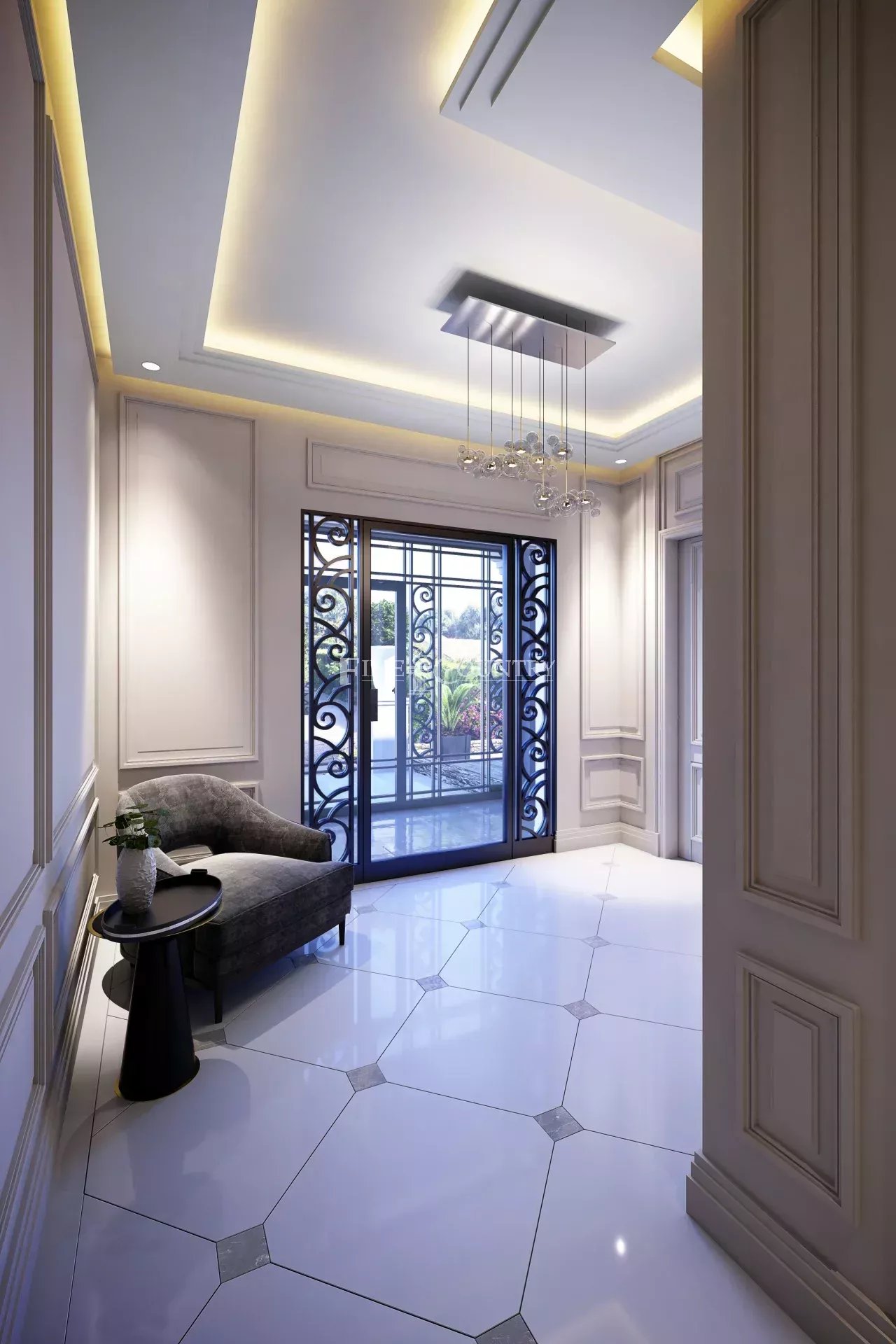 bathrooms. The quality of the materials used will be in correlation with the standing of the residence: solid parquet floors, natural stone, 120×120 porcelain stoneware, top-of-the-range fittings, armored door, double glazing and electric roller shutters, integrated LED lighting.