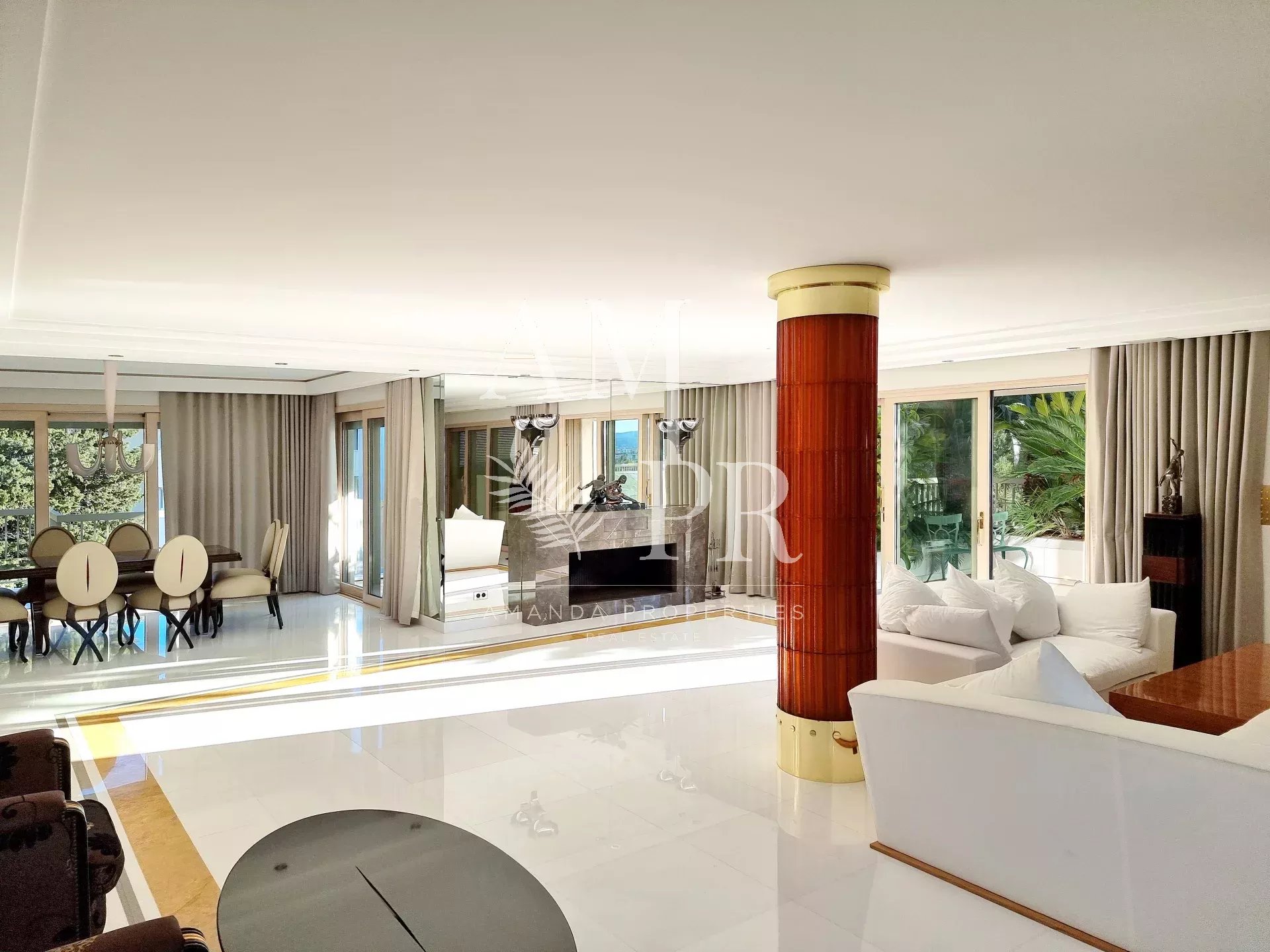 This flat includes a magnificent living room with fireplace opening onto a large terrace of 168 sqm with sea view, a dining room, a fully equipped independent kitchen, 6 bedrooms including a master bedroom, 4 bathrooms, a shower room, a living room opening onto a terrace with trees, a private lift, three garages and two cellars.