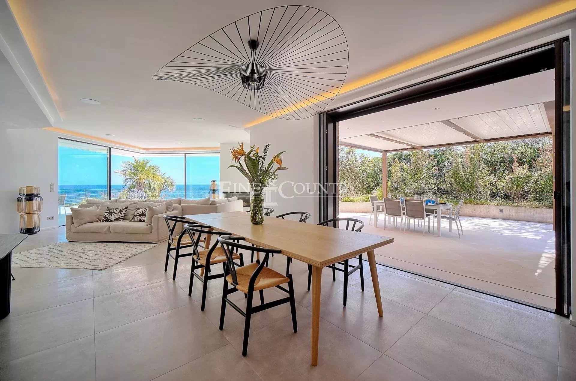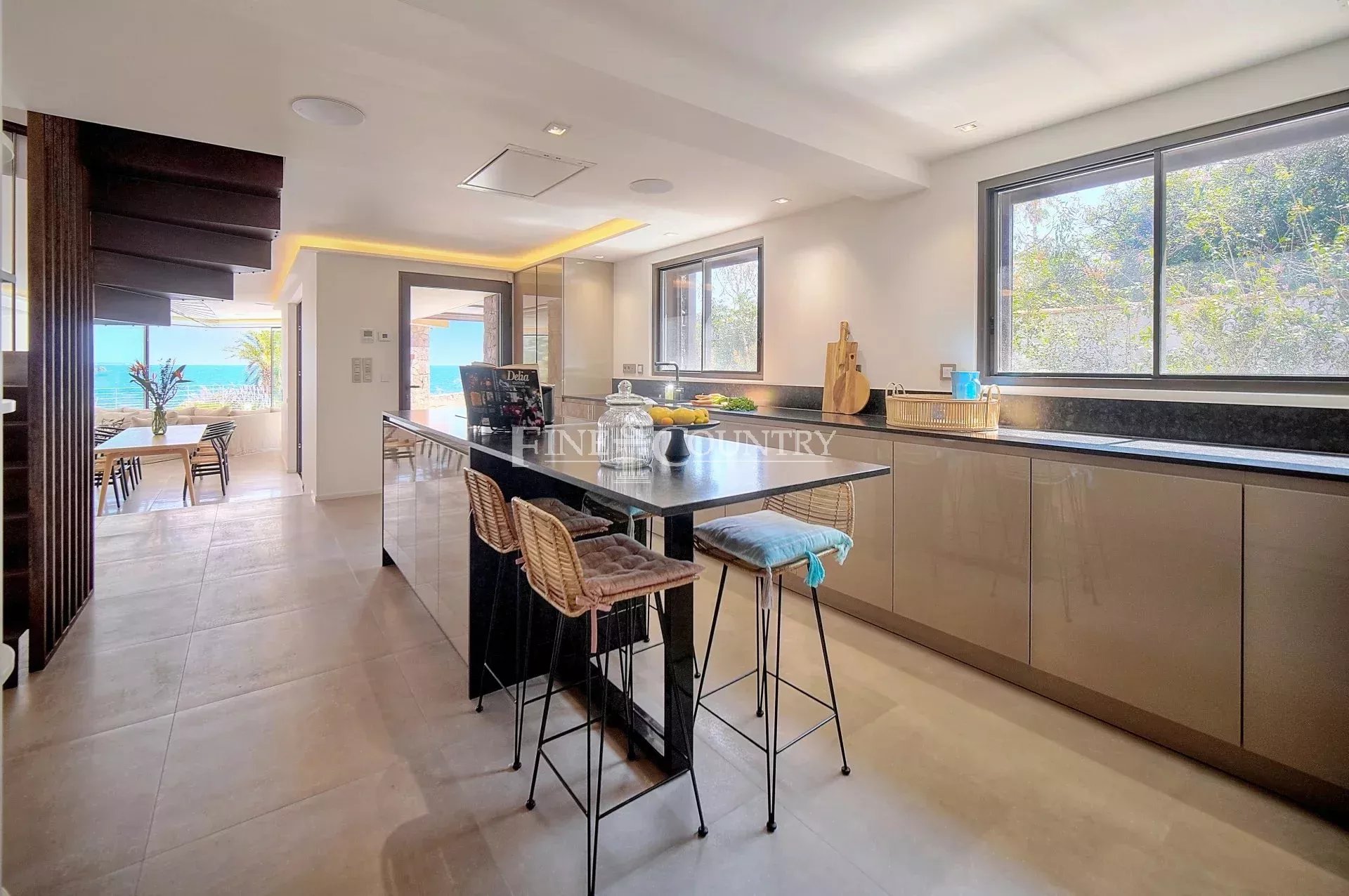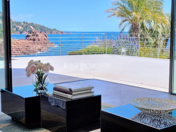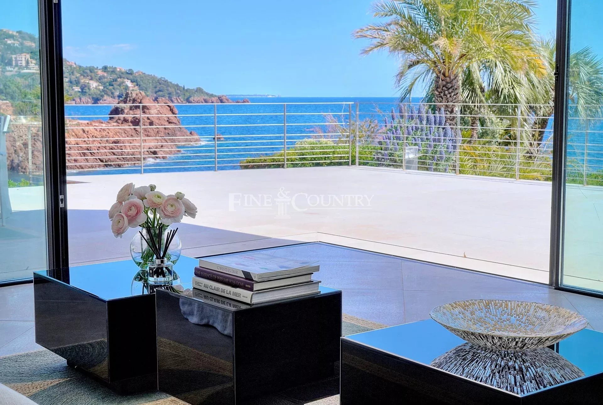 REF: 092023-09 With direct access to the sea, in one of the most beautiful natural settings on the Côte d’Azur where the contrast of the red rocks of the Esterel, stand out against the azur seas and natural vegetation, this unique property offers a prized and extremely rare waterfront location. Entirely renovated using high quality materials and simplistic design, allowing the environment and views to take the forefront, the property offers 2 separate villas. The main villa comprises 4 ensuite bedrooms and a wonderful indoor outdoor living and dining space with doors which slide into the walls allowing for the sea breeze to flow freely through the villa and from which to enjoy the fabulous sea views. Infront of the main villa is large terrace space, both covered and uncovered, which then lead down to the swimming pool and garden, and access direct to the sea below, through a small gate.