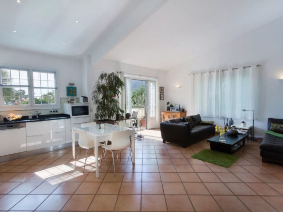On the first floor, there is a living room opening onto the terrace, a dining room, an open-plan kitchen, three bedrooms, one bathroom, and one shower room.