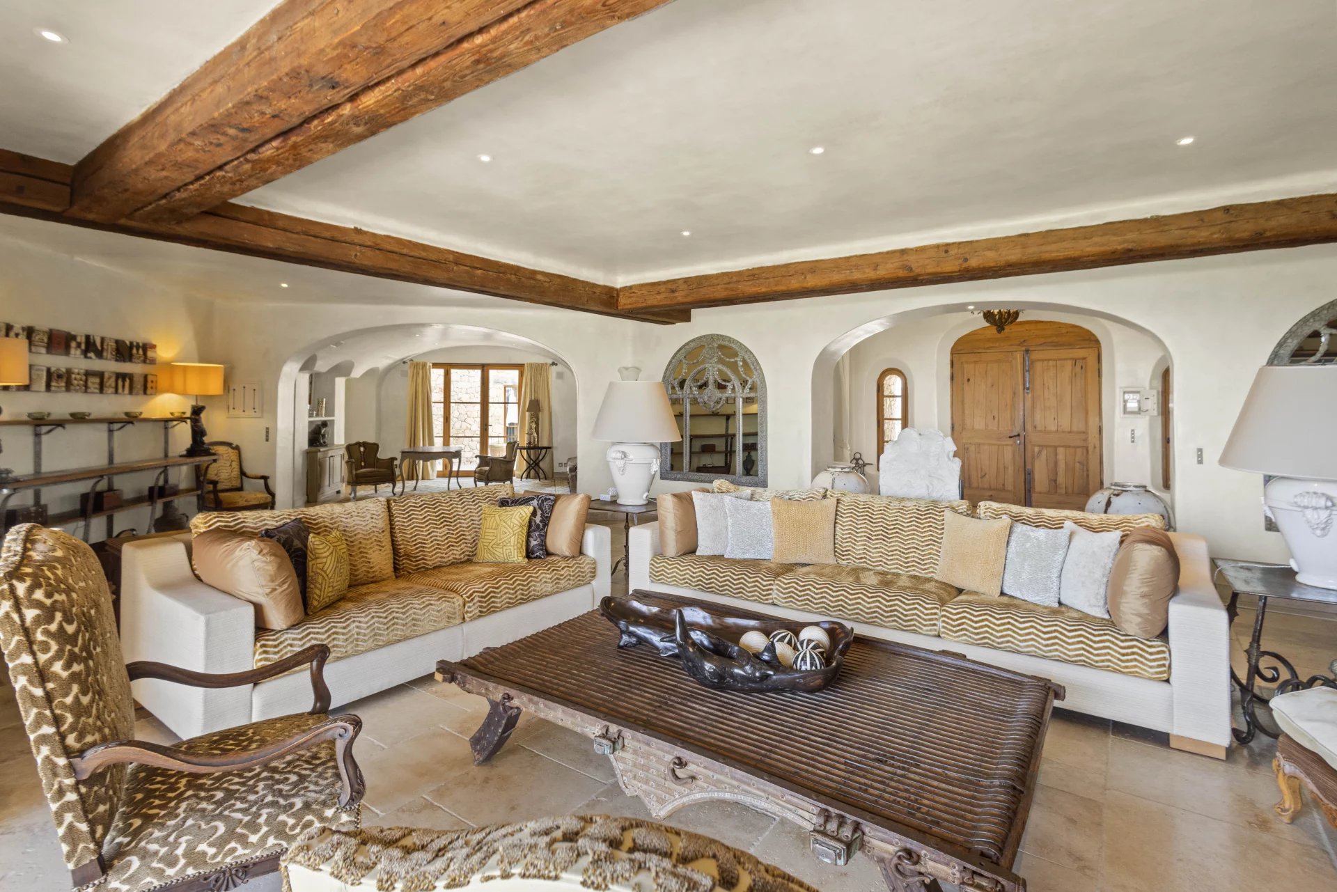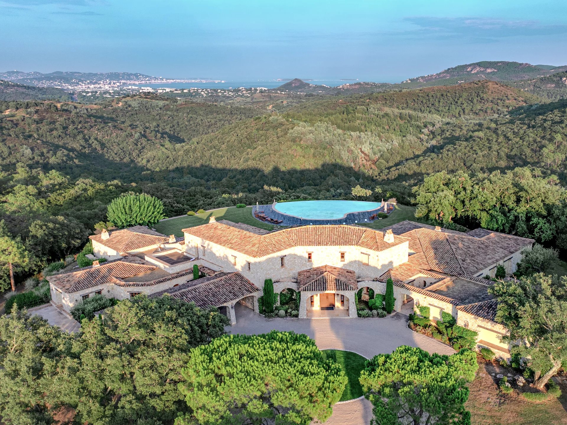 Amidst the Provençal backcountry, this unique estate near Cannes reveals breathtaking sea views on the Bay of Cannes, the Lerins islands, and the Esterel Mountains. Spanning 30 hectares, it comprises a main villa, 3 guest villas, a farmhouse, and a manager’s house, along with 5 staff apartments. Indulge in luxury amenities including 3 heated pools, a tennis court, helipad, and spa facilities. This property radiates genuine countryside charm, while being conveniently located just 20 minutes from Cannes, with easy access via helicopter to Monaco or Saint-Tropez. Experience the allure of stone architecture, exposed beams, and peaceful countryside living. Perfect for equestrian enthusiasts, this estate offers an opportunity to create your dream retreat.
