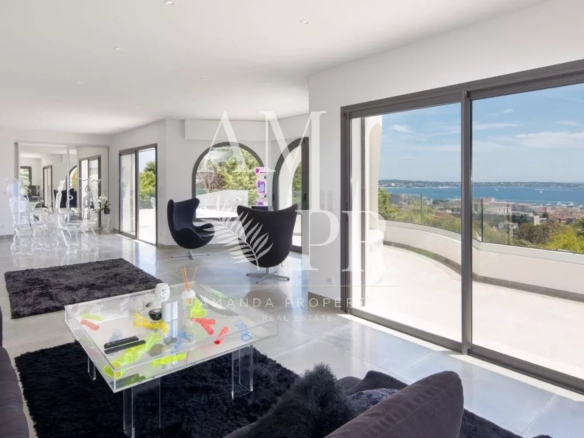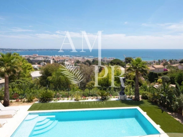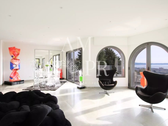 Your international Côte d’Azur real estate platform proposes for sale, on the heights of Golfe-Juan, this beautifully renovated villa that benefits from breathtaking views over the sea and the Cap d’Antibes.