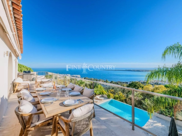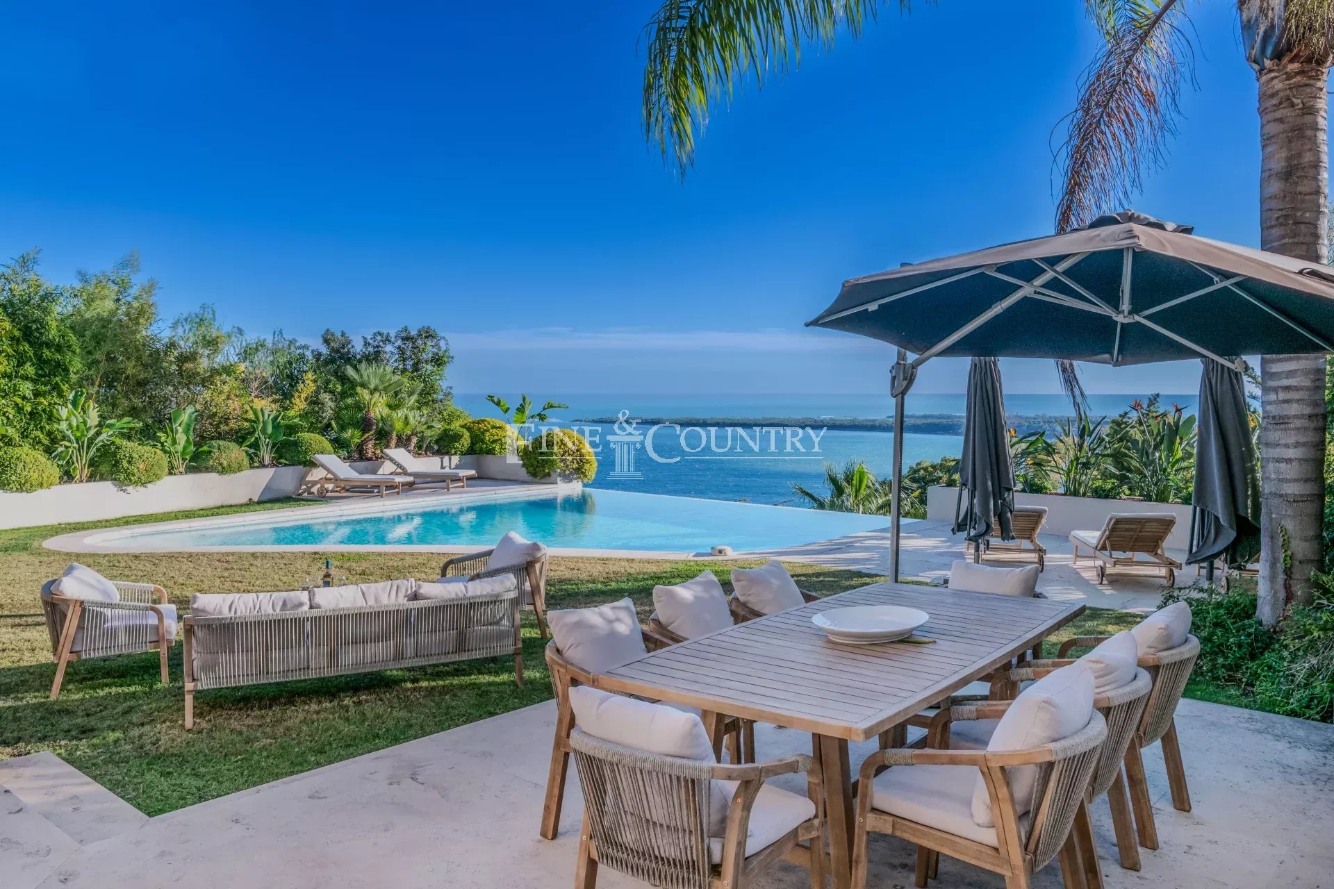 The outdoor area features manicured gardens with an infinity pool, ideal for entertaining family and friends and for making the most of the sunny Cote d’Azur lifestyle.