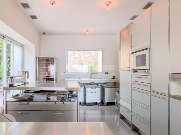 – On the ground floor; A separated apartment with a large room, a shower room with toilet. A sauna and a wine cellar. A huge terrace with swimming pool.