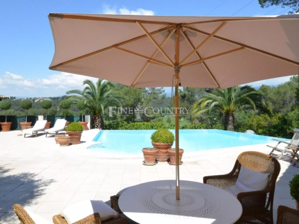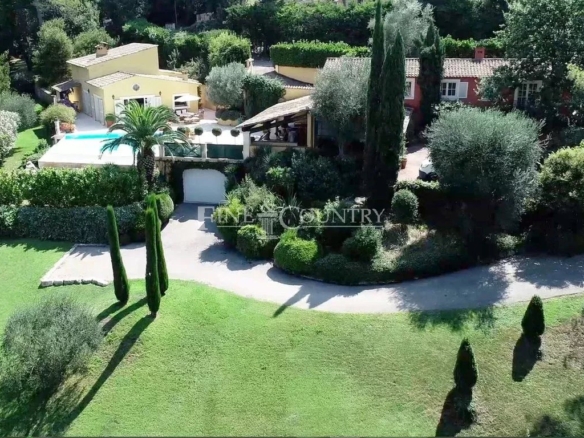Ref:012020-011 Villa for Sale Mougins. This beautifully presented Villa in a private domain compromises of 3.5 hectares of land. The property itself was built on a slight westward slope giving the buildings a splendid view of the golf course and the Clubhouse with direct access by a gate in the garden.