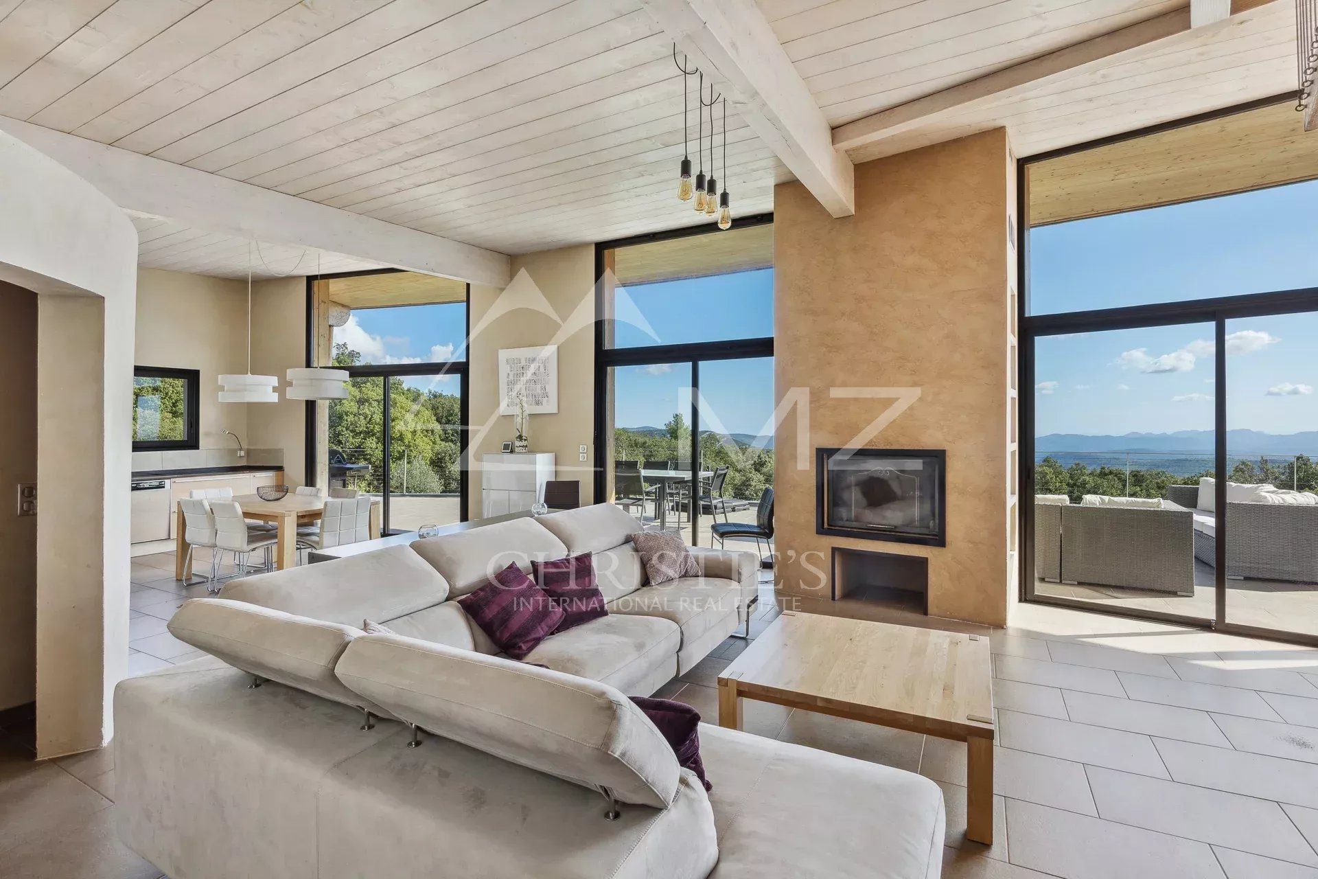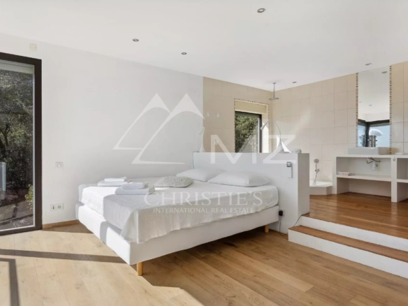 It comprises a vast living room with fully-equipped open kitchen and dining room opening onto a deep terrace with breathtaking views, a bedroom with en-suite shower room and a master bedroom with en-suite bathroom.
