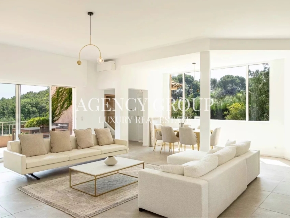 Located on the heights of Cannes in absolute calm, near the Croisette and in a very residential area, we offer a set of two villas with outbuilding of 400m² living space completely renovated with taste and enjoying an unobstructed view with a glimpse of the sea.
