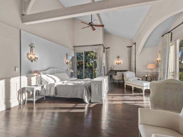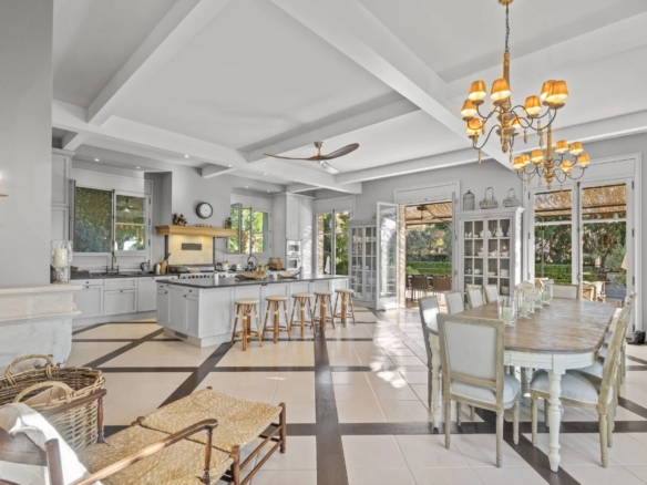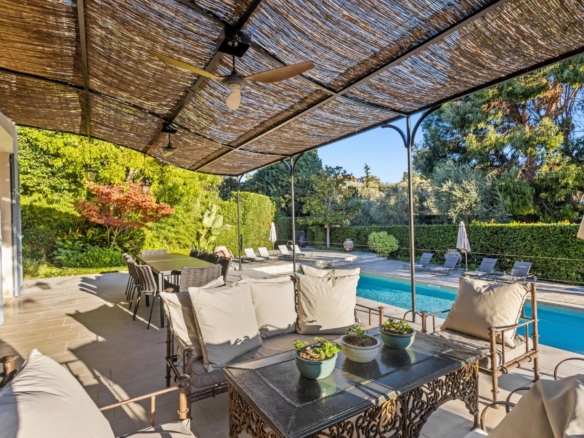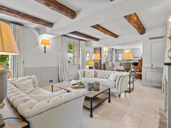 This luxurious villa on the western side of Cap d’Antibes offers tranquility near the sea and sandy beaches. The property skillfully blends historic elements with modern features, some parts dating back two centuries. The main floor hosts a cozy living room with a fireplace, a dining area, a kitchen, a library, and an en-suite bedroom. Upstairs, the master bedroom features an en-suite bathroom and dressing room, opening onto a terrace alongside four additional en-suite bedrooms.